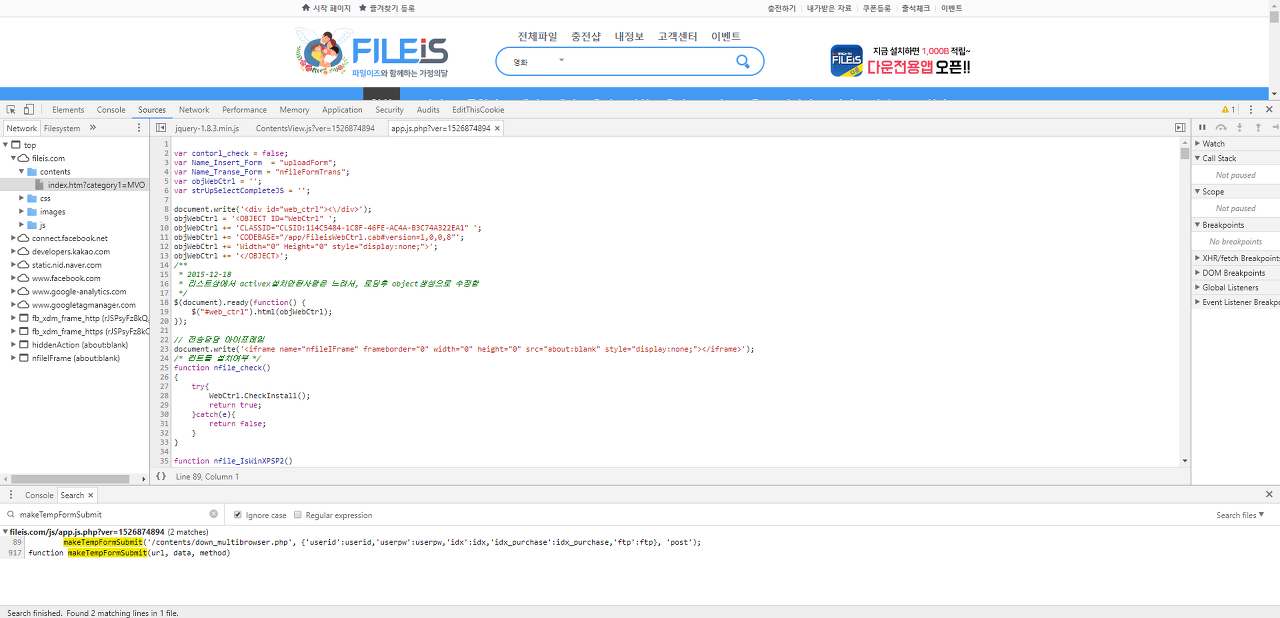 1. 크롬 개발자 도구[F12]를 사용하여 고속다운로드버튼 Onclick() 이벤트 확인